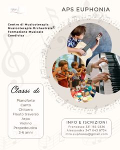 📌aps Euphonia è Centro di Musicoterapia Orchestrale riconosciuto e certificato dalla Fondazione Sequeri Esagramma ETS di Milano.