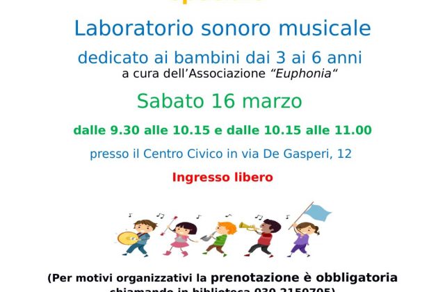 Laboratorio sonoro musicale dedicato ai bambini dai 3 ai 6 anni presso Torbole-Casaglia.