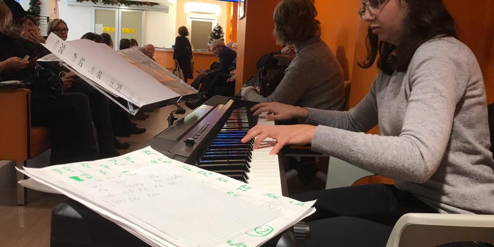 In formazione ridotta, visti gli orari di svolgimento, l’associazione Euphonia era presente con Martina Carcereri (pianoforte) e Claudio Schivalocchi (chitarra classica); guidati dall’AIL (Associazione Italiana contro le Leucemie-linfomi e mieloma) lungo i corridoi dell’ospedale Civile, ci siamo divisi tra i day-hospital e degenze di ematologia e oncologia adulti, cercando di portare un sorriso a chi normalmente deve patire, oltre alla malattia, le lunghe attese nelle sale.
